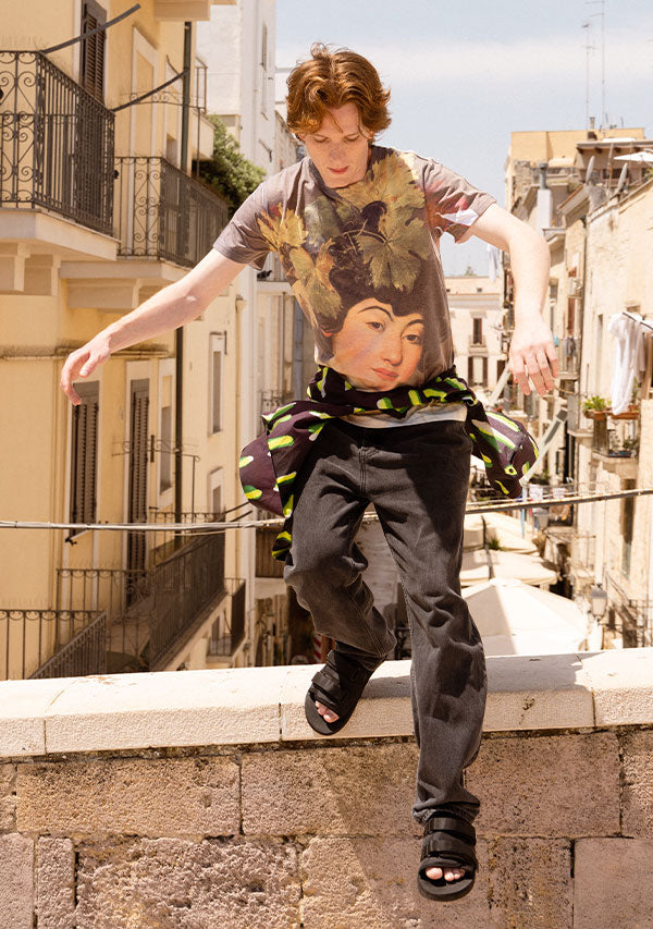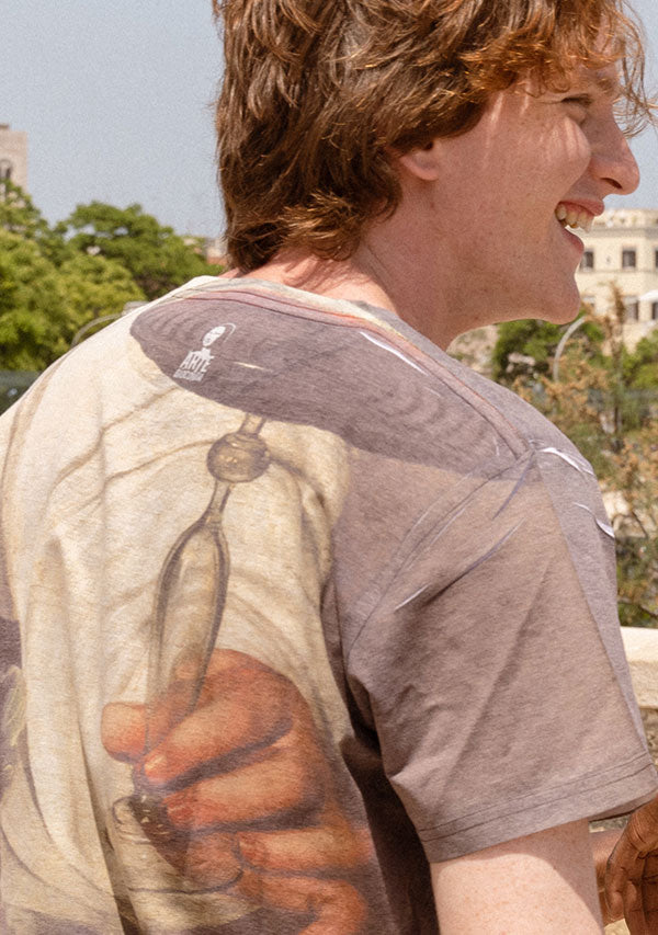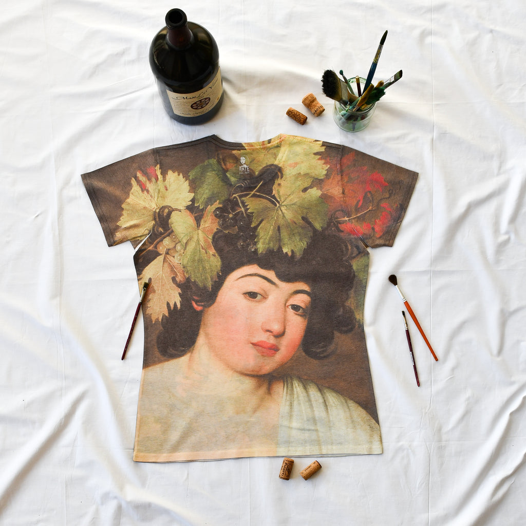 T-shirt art Bacchus by CARAVAGGIO | Stampa all-over, Idea regalo, Fotografia ad alta definizione, Dettagli sorprendenti dell'opera.